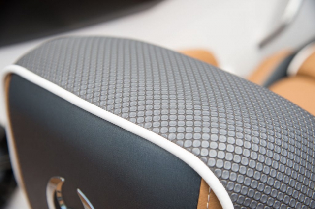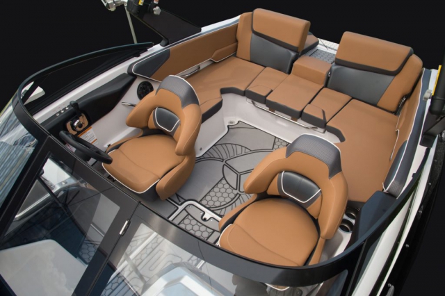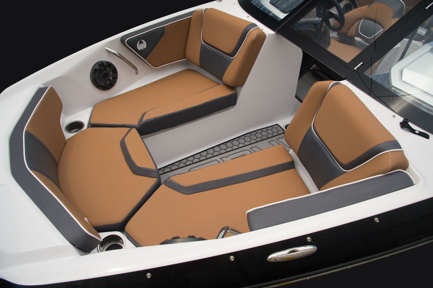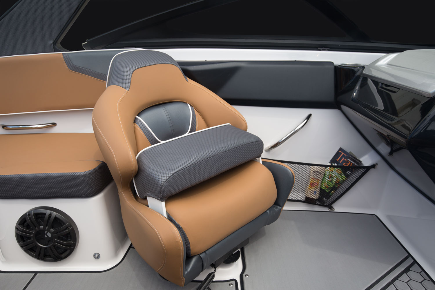 Upholstery, superior custom-contoured vinyl w/ elevated edging for added comfort