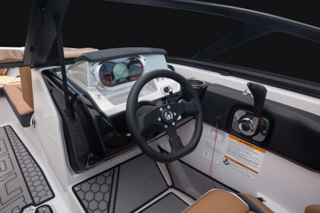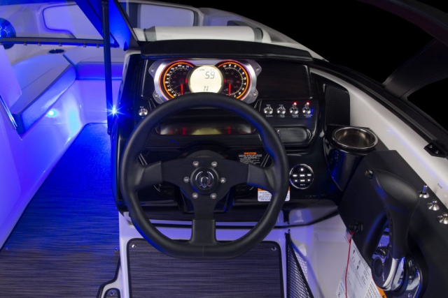 Instrumentation, helm: fuel level, fuel consumption, tach, GPS speed, hour meter, compass, oil, volt, overheat, check engine