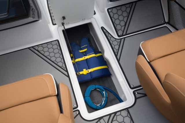 Ski locker, in-floor, w/ gas-assist hinged lid & mat