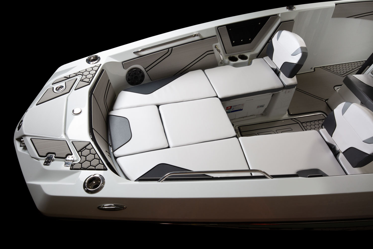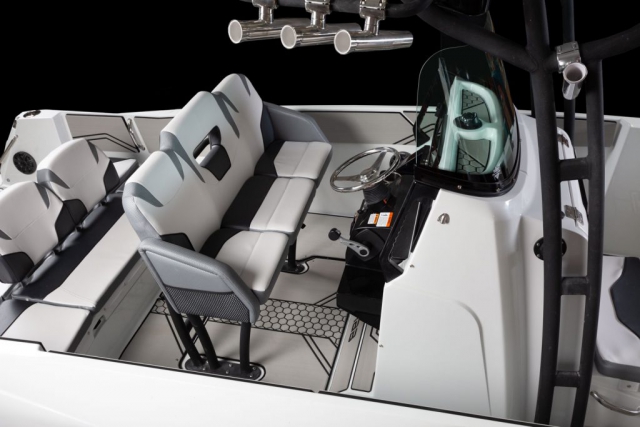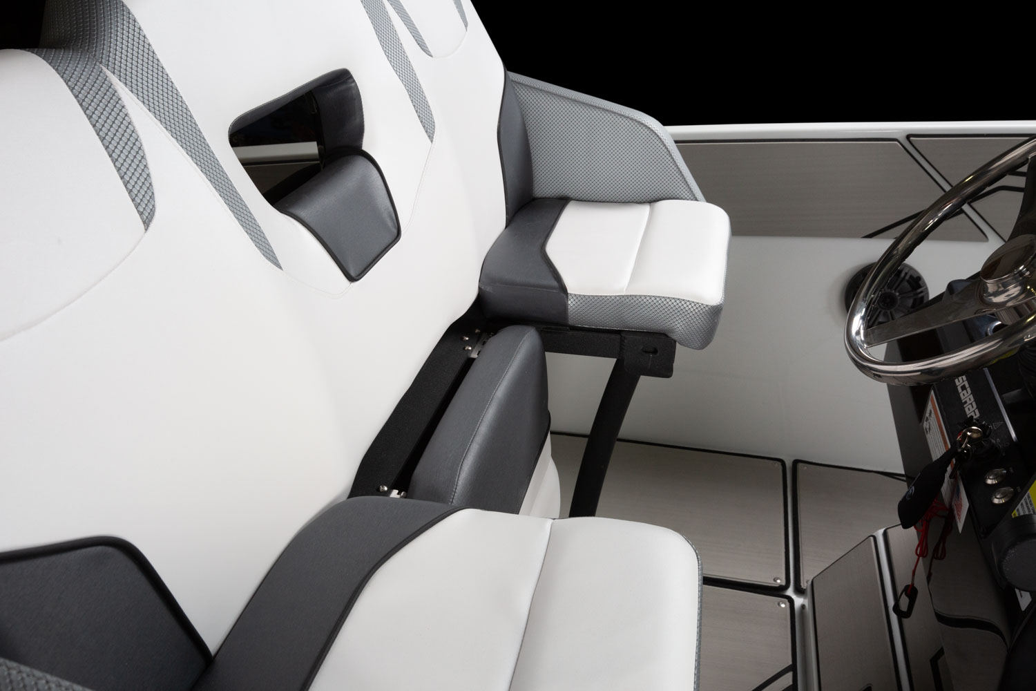 Upholstery, superior custom-contoured vinyl w/ elevated edging for added comfort