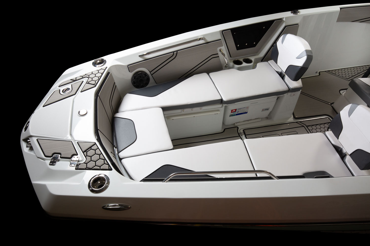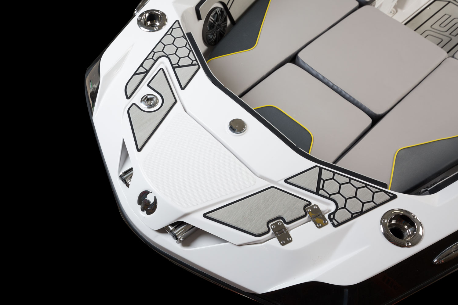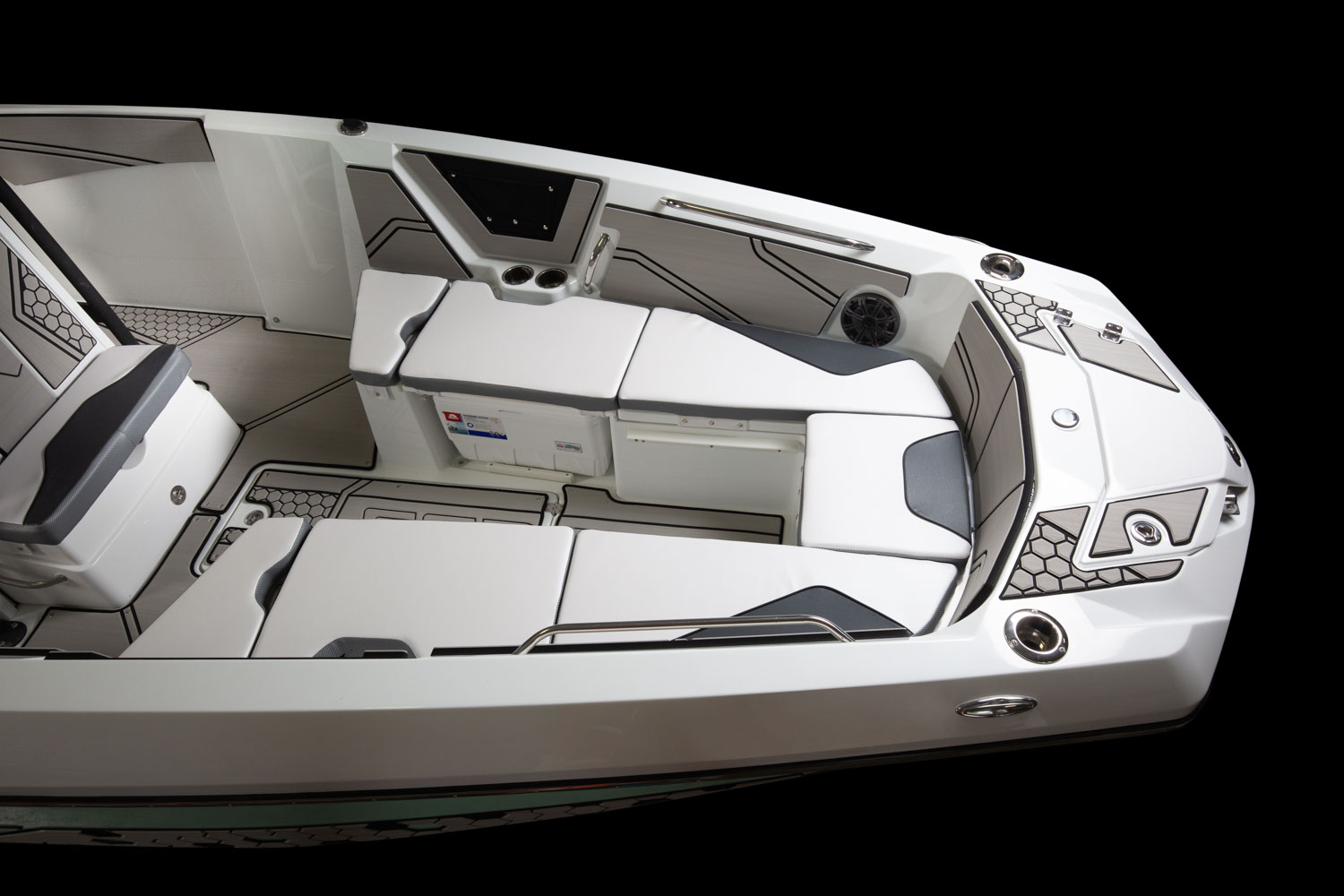 Upholstery, superior custom-contoured vinyl w/ elevated edging for added comfort