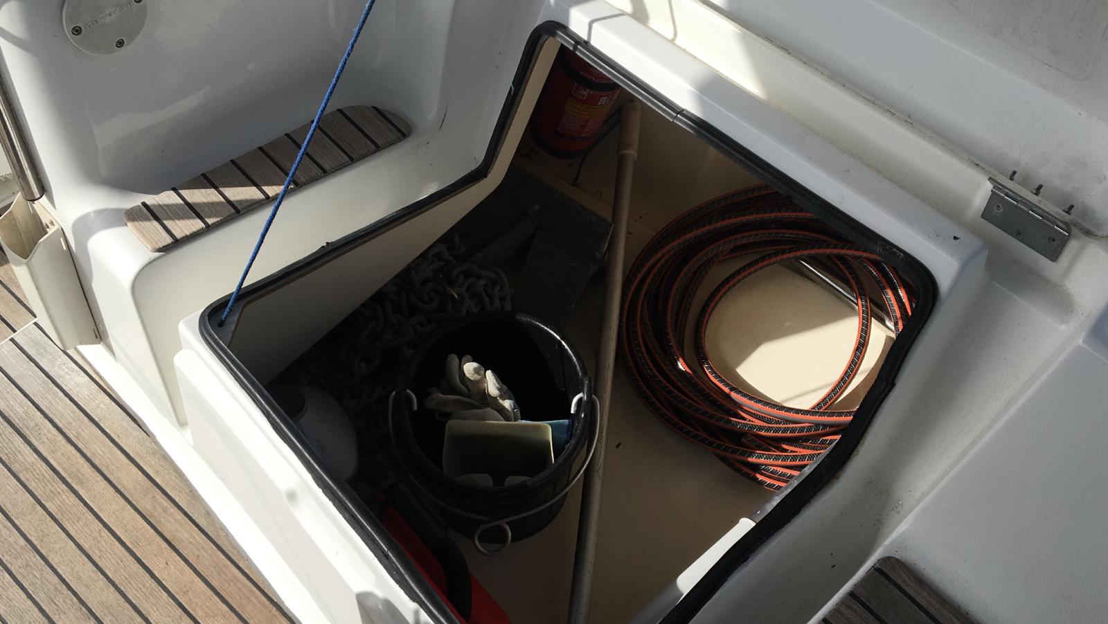 Ancora, Asse di rispetto, Autoclave, Batterie, Caricabatterie, Doccia esterna, Luci di cortesia, Piattaforma, Pompa di sentina automatica, Pompa di sentina elettrica, Pompa di sentina manuale, Pozzetto Teak, Presa 220V banchina, Salpa Ancore Elettrico, Scaletta da bagno, Supporto motore fuoribordo, Tavolo pozzetto, Winch Elettrico, Windex.