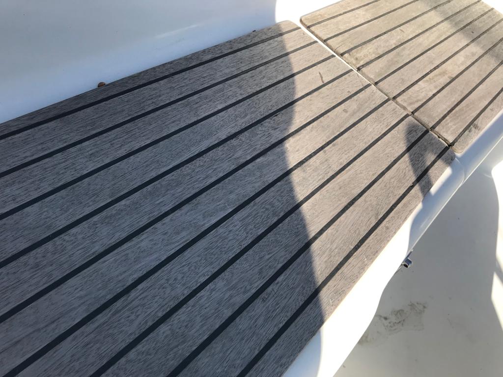 Ancora, Asse di rispetto, Autoclave, Batterie, Caricabatterie, Doccia esterna, Luci di cortesia, Piattaforma, Pompa di sentina automatica, Pompa di sentina elettrica, Pompa di sentina manuale, Pozzetto Teak, Presa 220V banchina, Salpa Ancore Elettrico, Scaletta da bagno, Supporto motore fuoribordo, Tavolo pozzetto, Winch Elettrico, Windex.