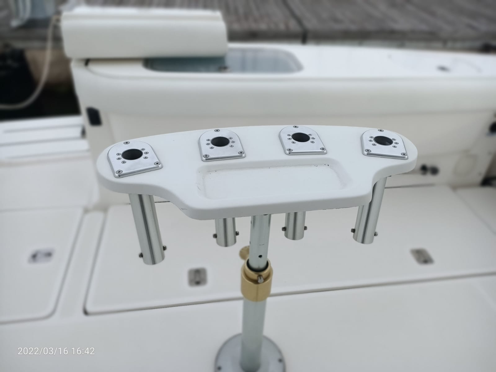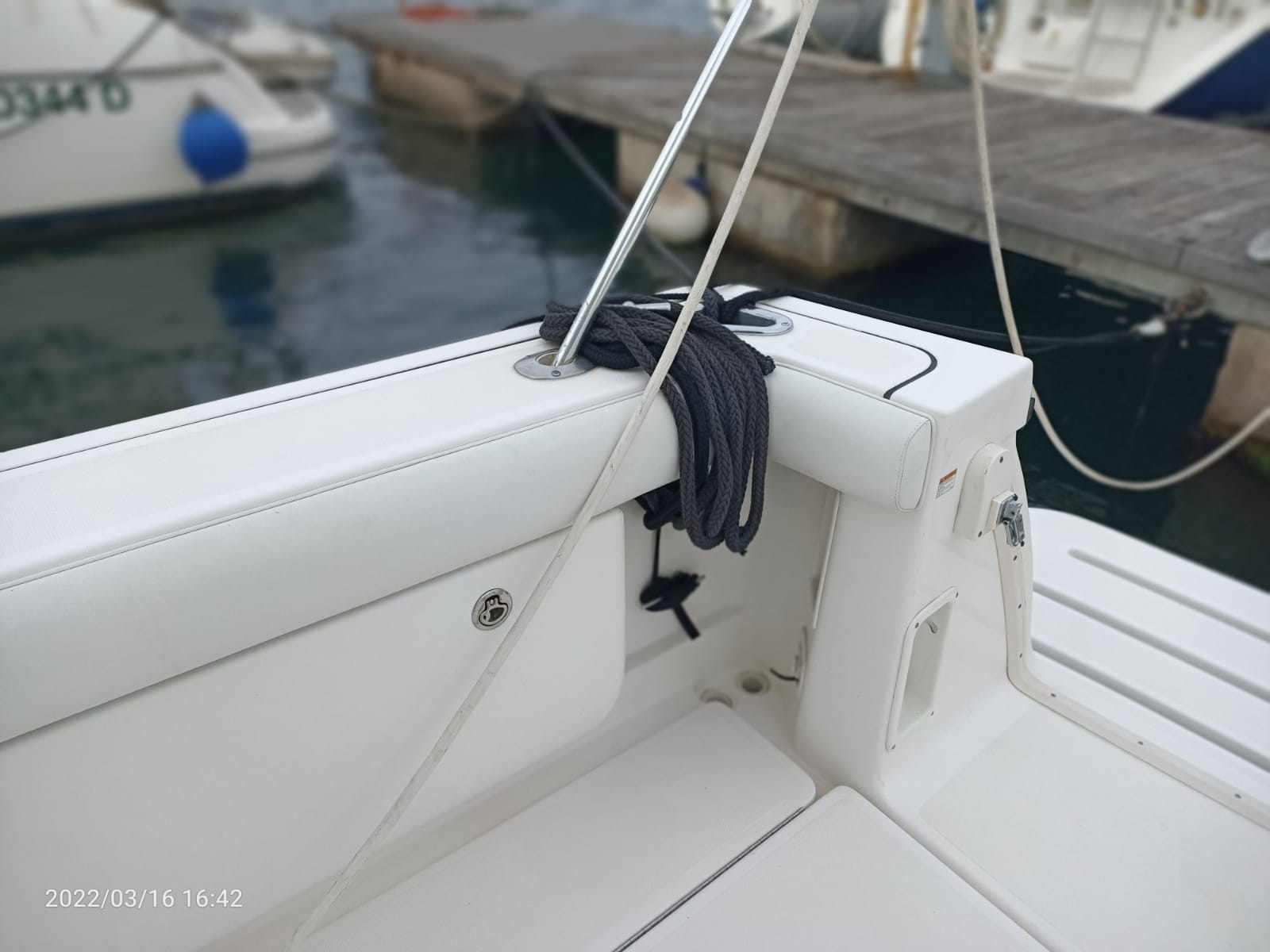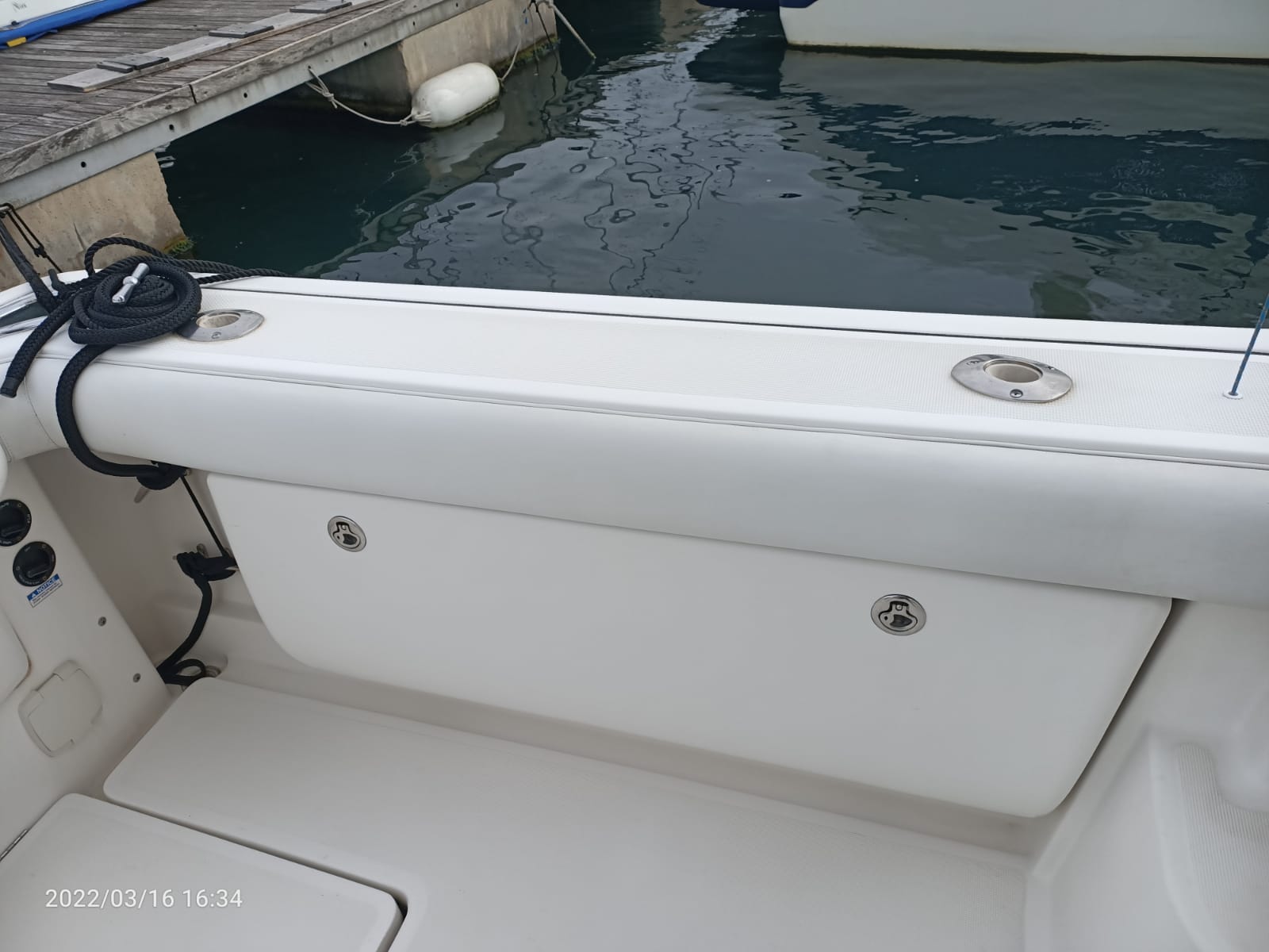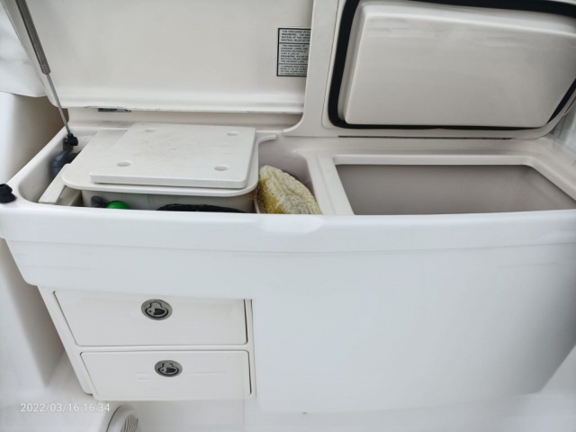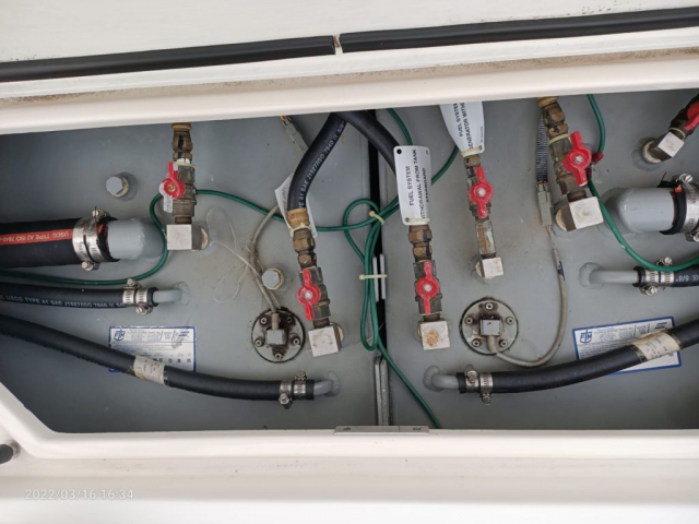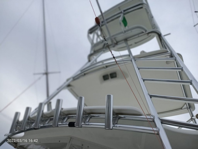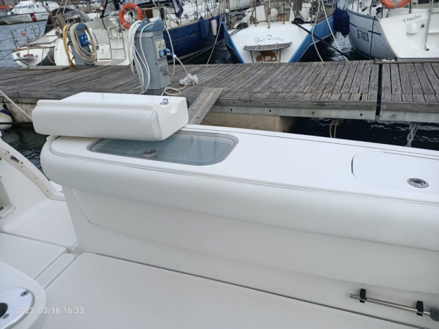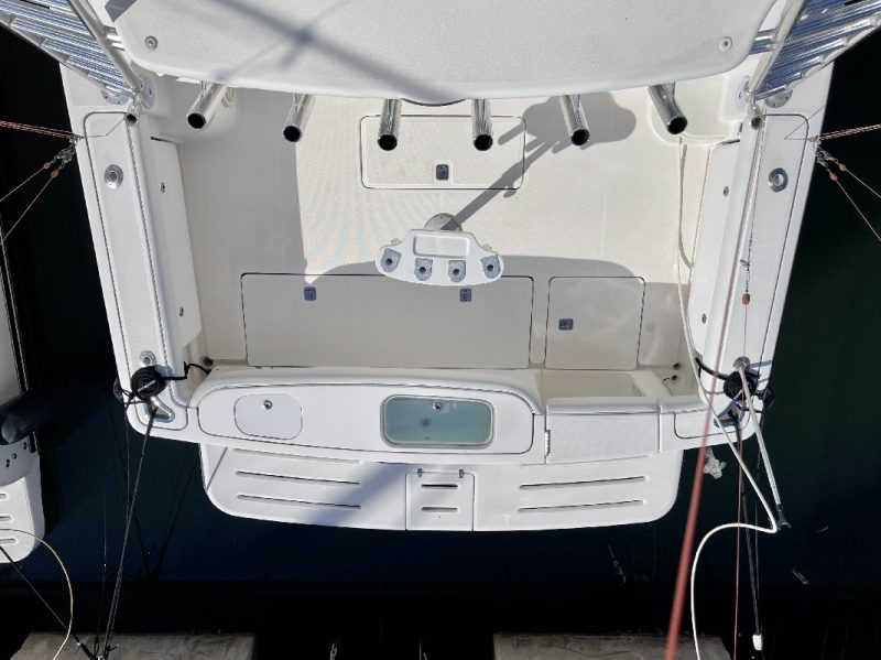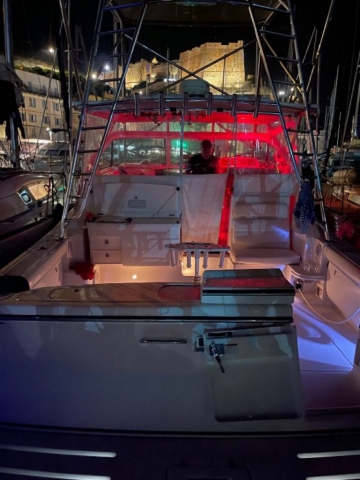 Divergenti, Marlin Tower (con doppia timoneria), Portacanne (da riposo sotto Hard Top + vari + supporto pozzetto), Trolling Valve, Vasca del vivo (con ossigenatore), Vasca pescato (con maceratore).