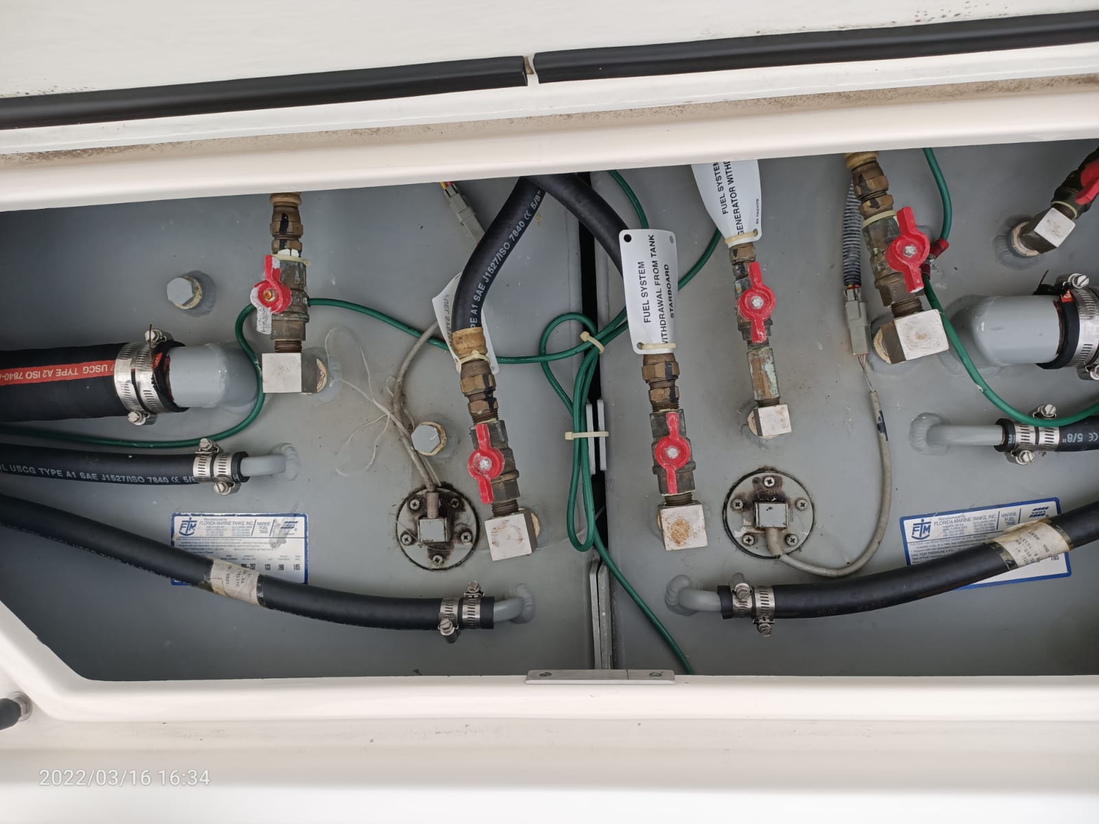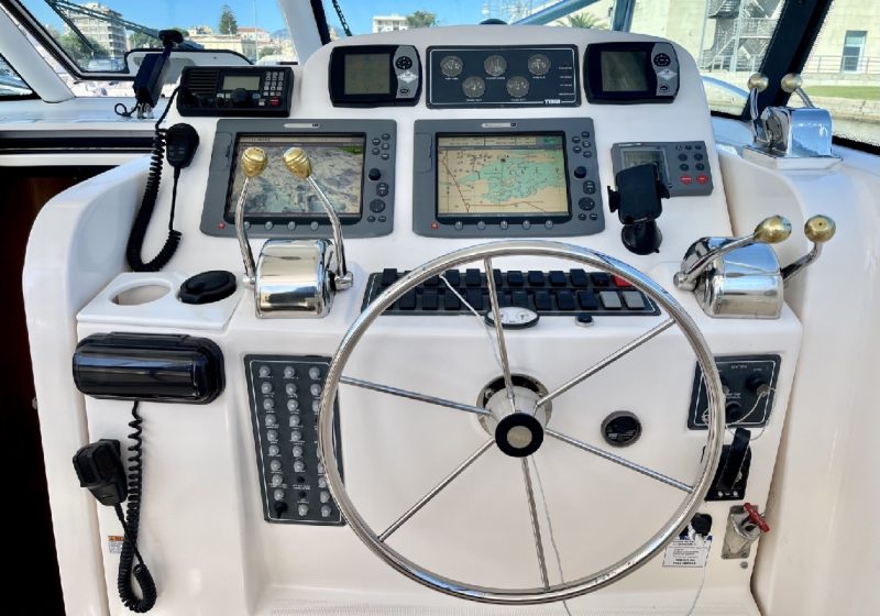 Angolo di barra, Antenna radar, Bussola, Comando motori elettronico (motori con Trolling Valve), Contamiglia, 2 Display, Ecoscandaglio, 3 GPS (2 Raymarine 180 + 1 Raymarine 80 su Marlin Tower), Pilota automatico (Raymarine con telecomando), Radar, Radio VHF (fisso a lunga portata).