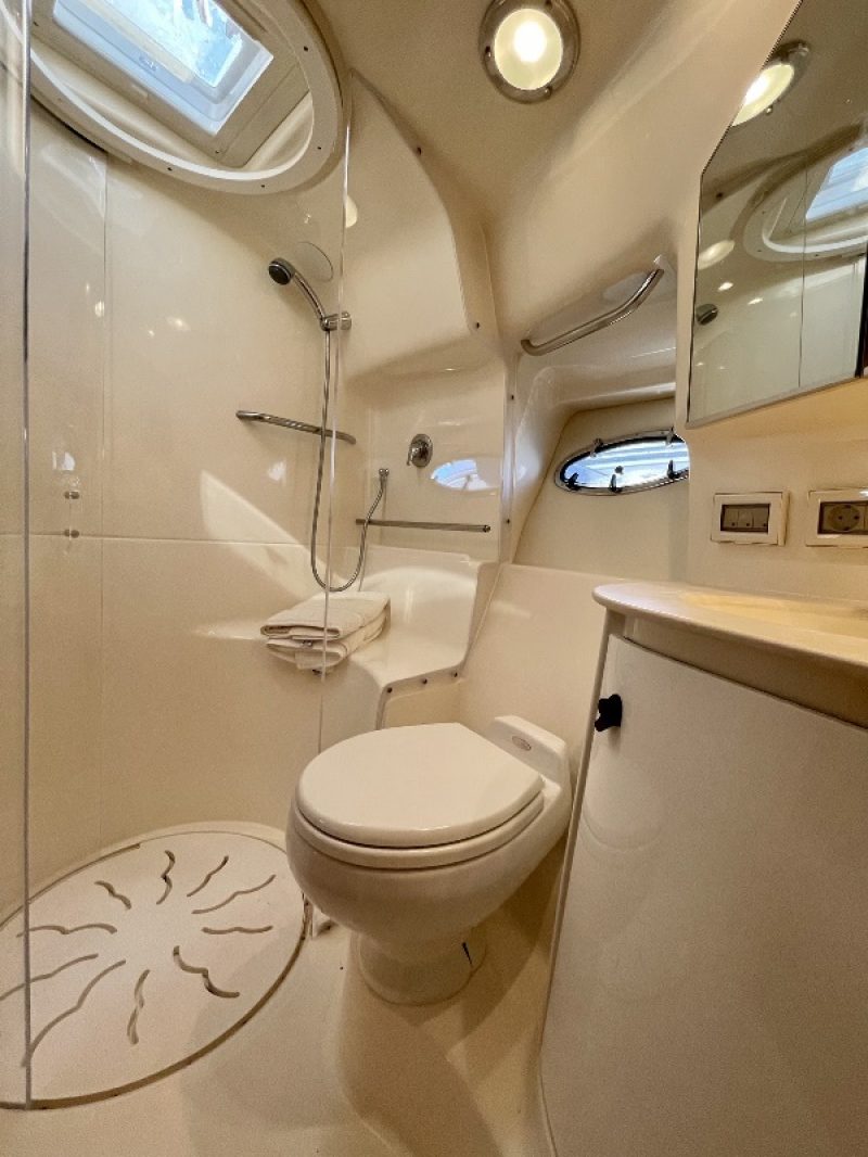 Aria condizionata, Boiler, Clima reversibile, Impianto acque nere, Prese interne 220V, WC marino elettrico.
